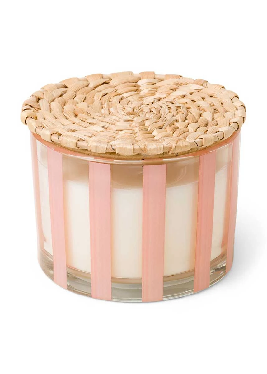 Fresh scents, sleek design, and sustainable vessels? Oh yes. Inspired by the umbrellas found on European beaches and the colors of the French Riviera, the Al Fresco collection showcases timeless striped glass vessels and refreshing fragrances. This 12 oz. candle is hand-poured in a reusable glass vessel with a stylish rattan lid that can be used as storage for jewelry, office supplies, or any small items after removing the wax.