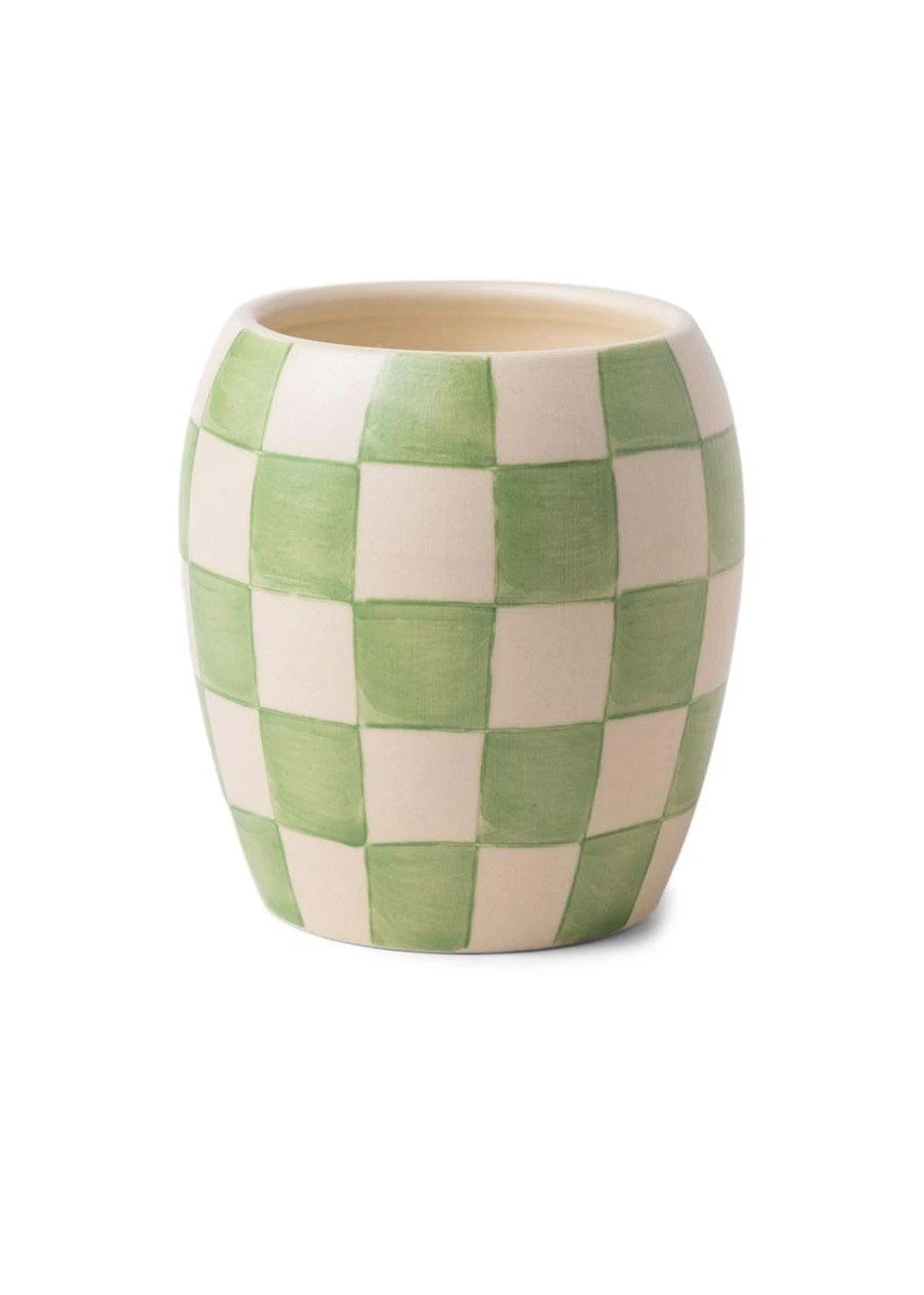 These 11 oz. candles come in hand painted vessels, making each one uniquely yours. Checkmate was designed with reusability in mind. Once emptied, they make a perfect vase, mug, or statement decor piece!