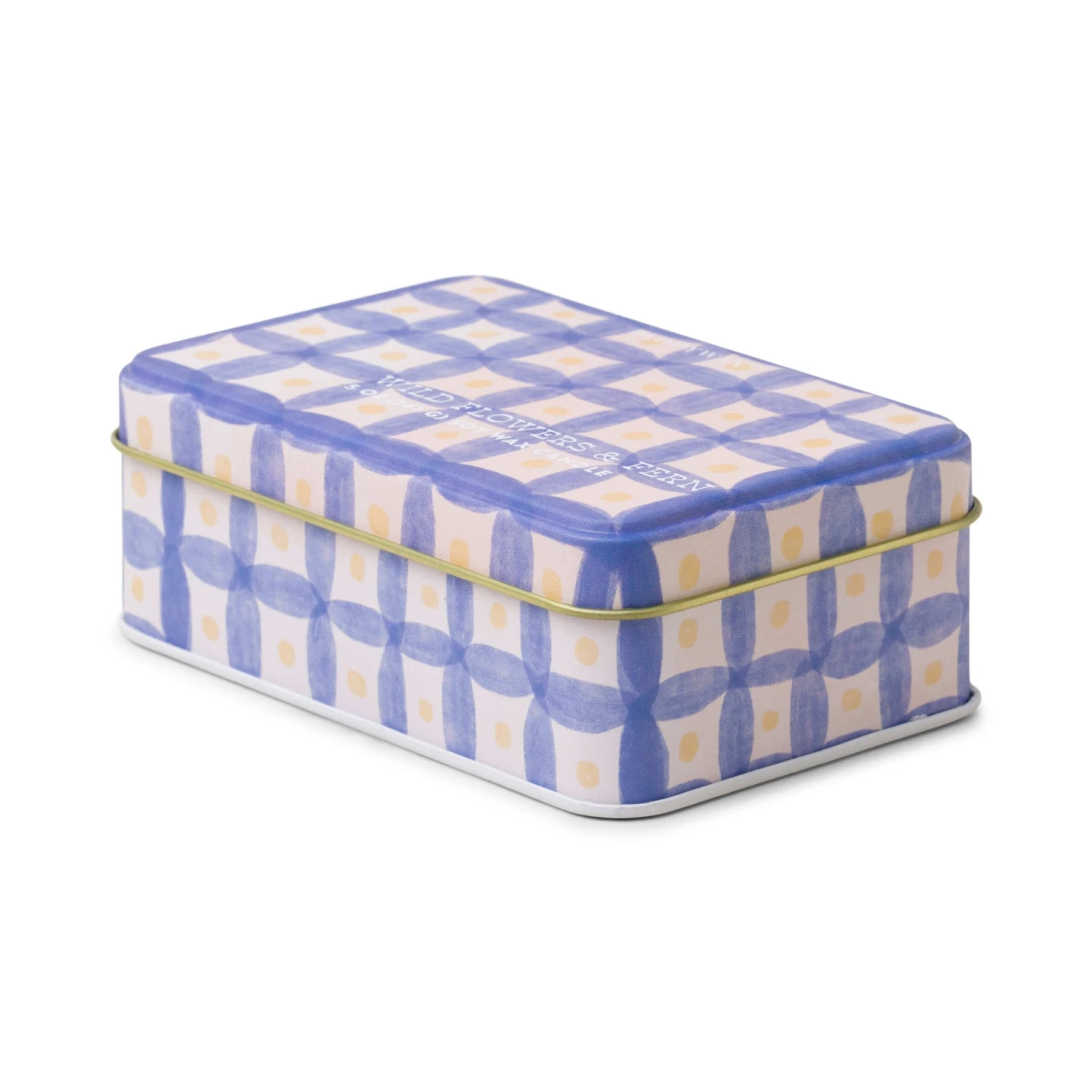 Easily incorporate fun pattern play into your space with our Everyday Tins 5 oz. – Wild Flowers & Fern. This conveniently sized 2 wick 5 oz tin candle will brighten your day with a fragrant sweet scent and spunky pattern. Our Everyday Tins are simple to stack and easy to store – collect them all!