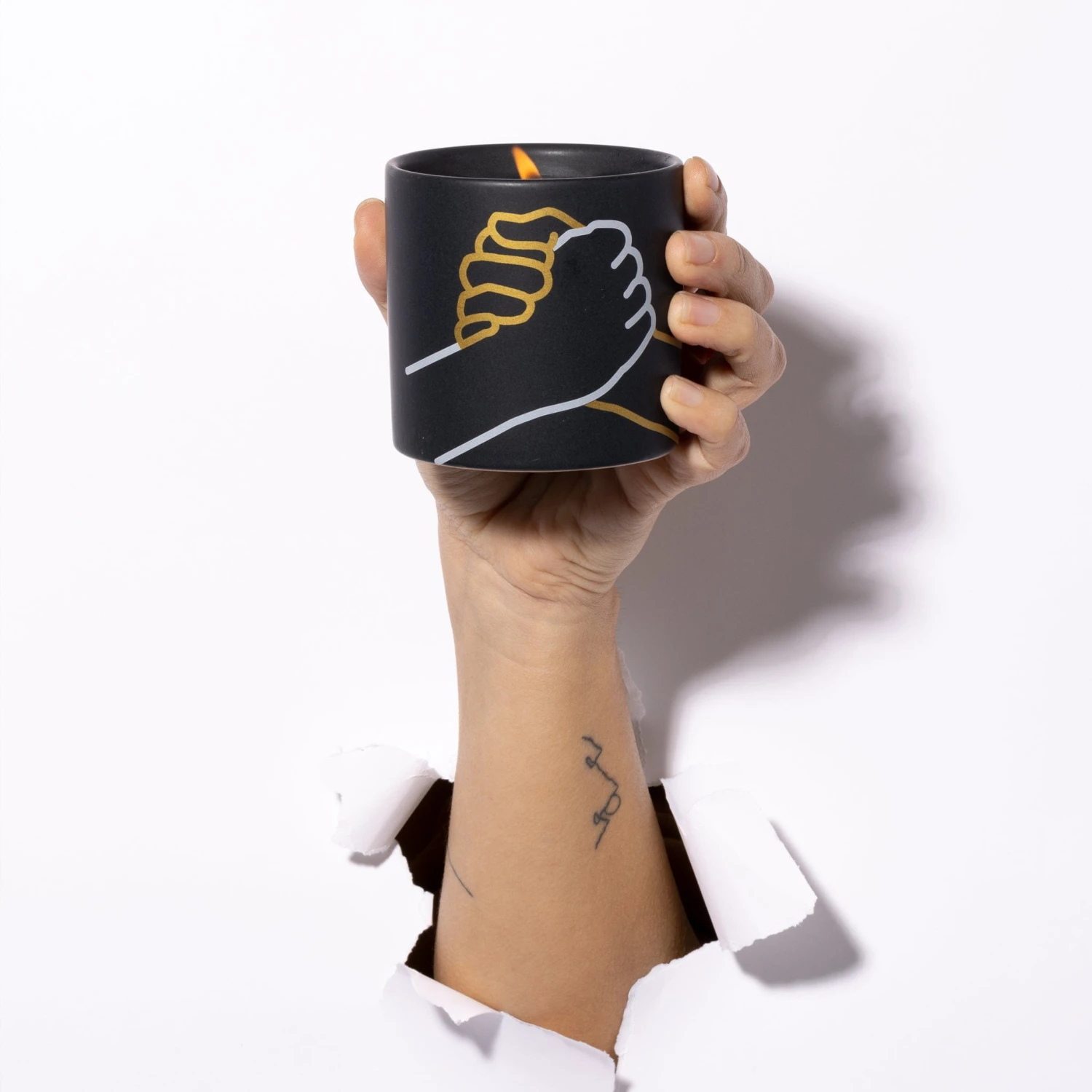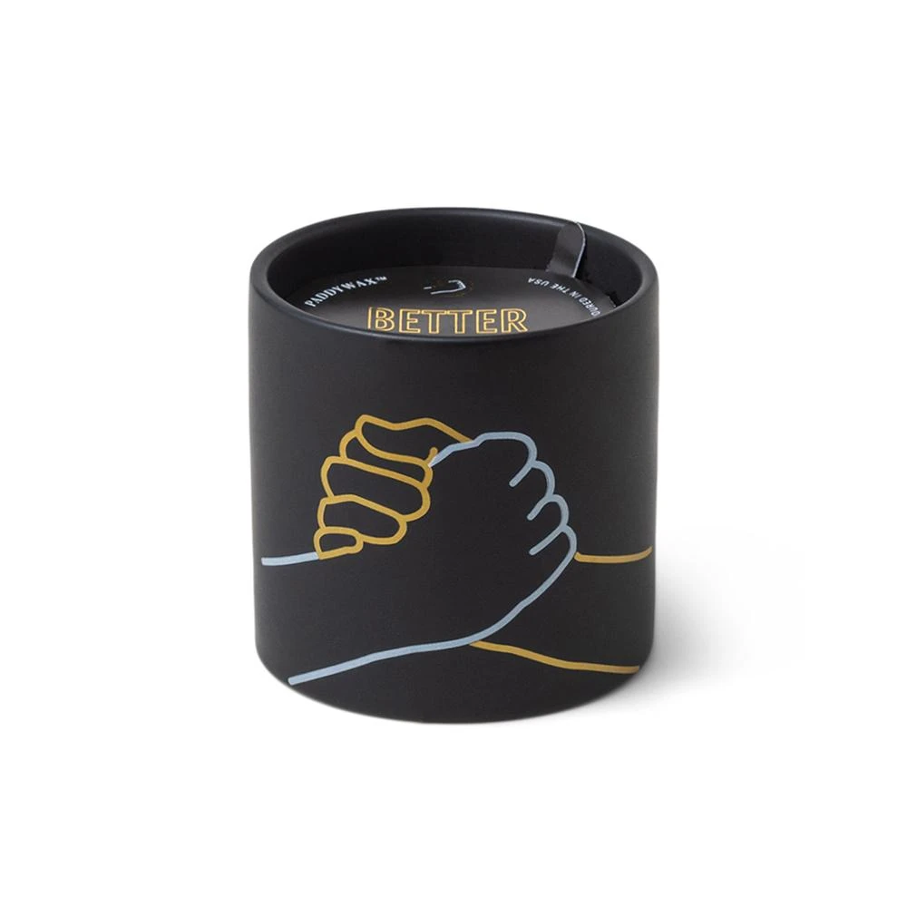 Better together! Express yourself with these colorful matte ceramic candles. Each candle comes with a gold foil stamped dust cover with a fun sentiment to share with the people you love.