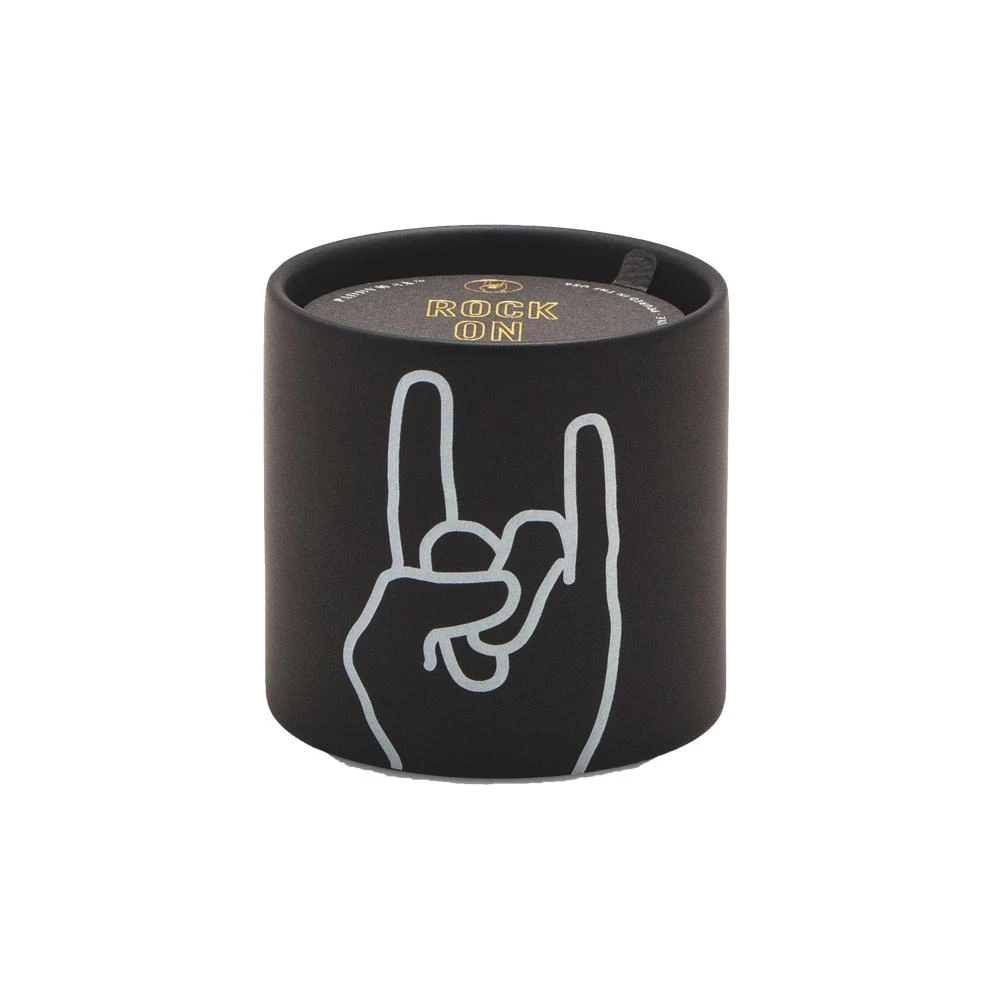 Rock on! Express yourself with these matte ceramic candles. Each candle comes with a gold foil stamped dust cover with a fun sentiment to share with the people you love.