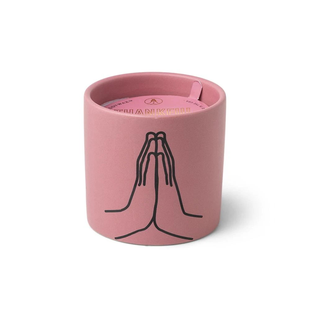 Thankful for you! Express yourself with these colorful matte ceramic candles. Each candle comes with a gold foil stamped dust cover with a fun sentiment to share with the people you love.