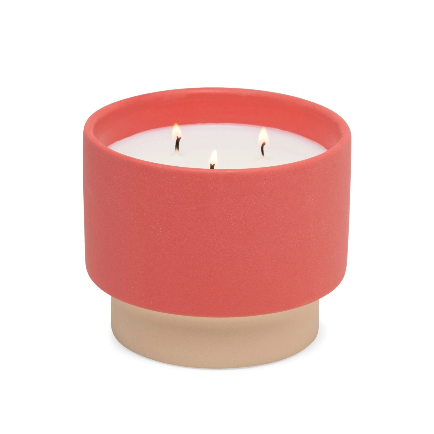 Some call it eccentric, we just call it fun! Full of character and textures, our 3-wick Color Block collection features textured ceramic candles in two colors. No matter where you are, the playful charm of sunny Palm Springs can be yours! After the candle is gone, the color doesn’t have to go anywhere; just repurpose as a fun planter or catch-all.