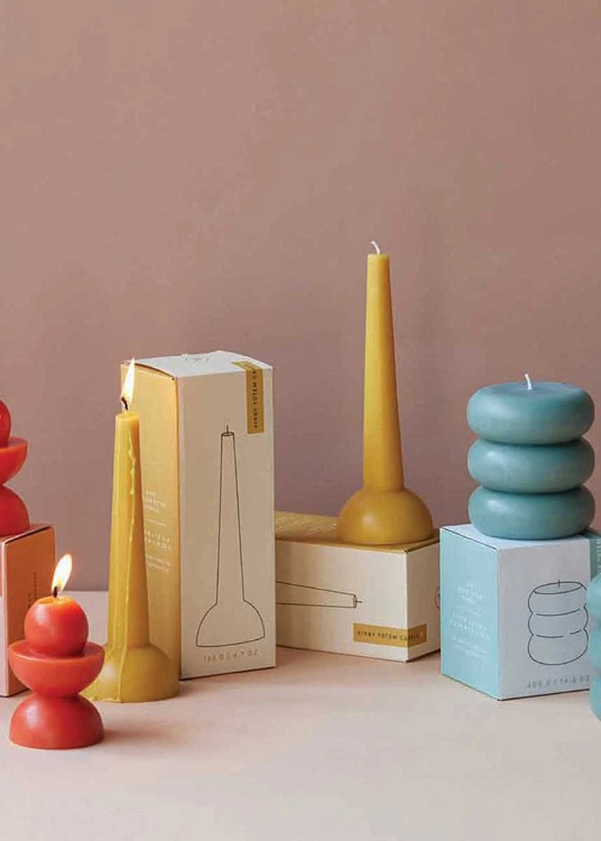 Statement totem candle to match any home decor. Light for ambiance or keep as a permanent decorative feature.